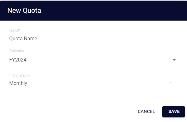 First, select the Plan you’d like to add Quotas to. In the Plan, click on the purple plus sign button in the bottom right-hand corner and select “Add Quota”. Then select the attributes, Calendar and frequency of the Quota and Save.