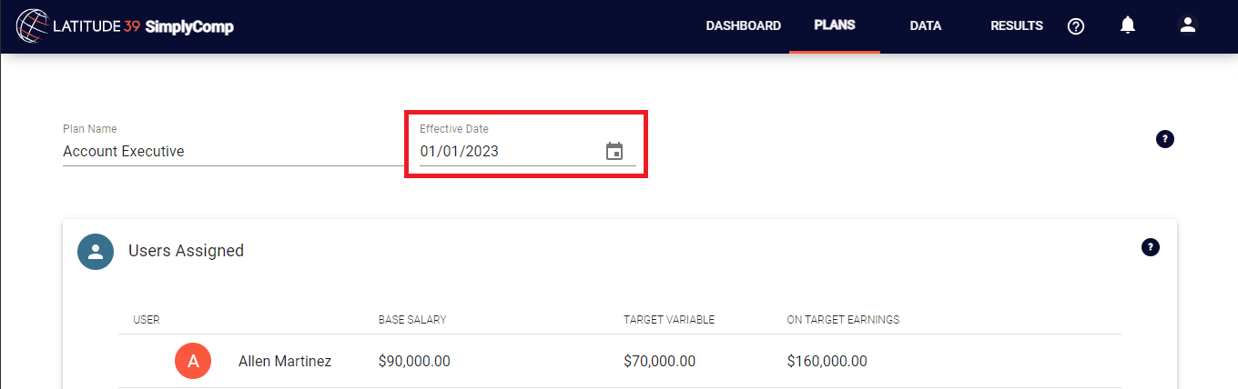 When viewing a Plan, the Effective Date at the top will show you all active Users, Quotas and Payments at that period in time. Think of it as a way to view the Plan across time instead of a setting in the Plan. This is useful when you have payment rules effective for certain periods, people effective for certain periods, and more.